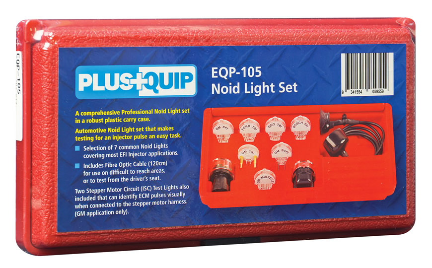 A selection of 7 common Noid lights covering most Automotive EFI Injector applications fitted in a robust plastic carry case makes testing for an injector pulse an easy task.